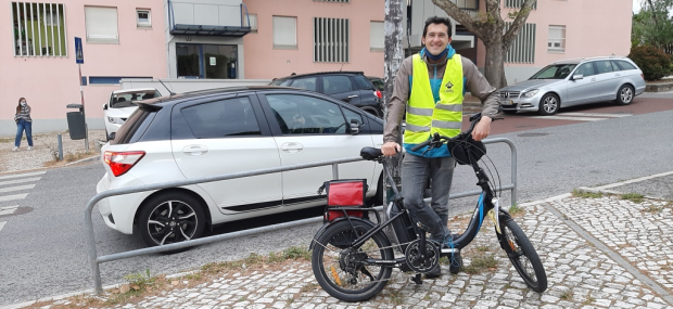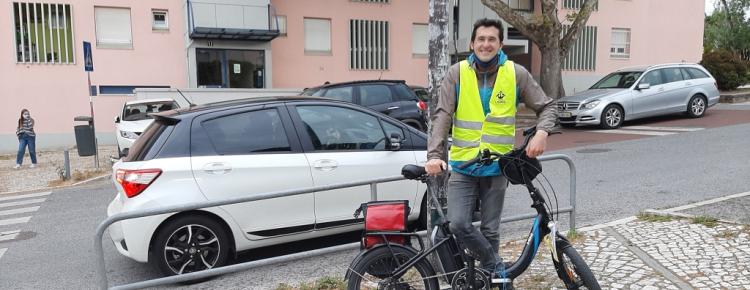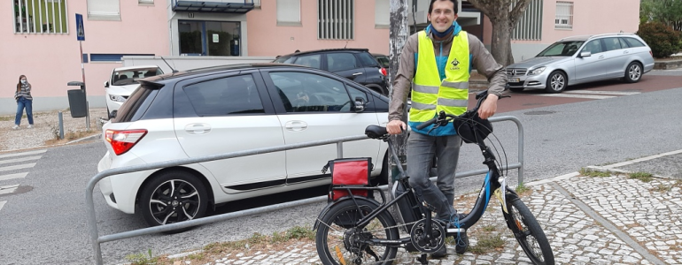 O “comboio” chegou a horas à Escola Básica de Telheiras, na Rua Prof. Mário Chicó. Por agora com missão cumprida, o “maquinista” faz uma pausa. Trata-se de João Bernardino. Engenheiro e consultor na área dos transportes e planeamento, 39 anos, três descendentes, com onze, nove e cinco, começou em 2010 a ir de bicicleta para o trabalho e ganhou tanto impulso que quando o filho mais velho entrou para a creche já foi a pedalar com o pai.