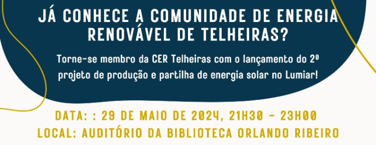 Este segundo projeto será anunciado numa sessão pública, organizada no âmbito do Festival de Telheiras, no dia 29 de Maio de 2024 às 21h30, no Auditório da Biblioteca Orlando Ribeiro. Durante a sessão, que contará com a participação do vogal da Sustentabilidade da Junta de Freguesia do Lumiar, Rodrigo Benitez, os voluntários da equipa de coordenação da CER Telheiras vão apresentar em detalhe a origem da CER Telheiras, o seu funcionamento e o projeto piloto já em curso. Depois será lançado o segundo projeto da CER Telheiras, no Polidesportivo do Alto da Faia, com a explicação dos benefícios para os novos membros e das condições de adesão. Antes da sessão, será inaugurada no mesmo local a exposição fotográfica “Casa quente para toda a gente: Retratando histórias” promovida pela ZERO, seguida de uma apresentação musical pelo CoroART. Também presente estará a Coopérnico com uma banca de divulgação.