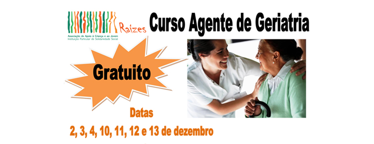 Após o Curso de Competências Básicas em Informática realizado em Outubro e Novembro, a Associação Raízes vai promover durante o mês de Dezembro um Curso de Agente em Geriatria para desempregados das Freguesias do Lumiar, Charneca e Ameixoeira. O curso é gratuito e terá lugar no Lumiar nos dias 2, 3, 4, 10, 11, 12 e 13 de Dezembro, das 9:30 às 13:30.