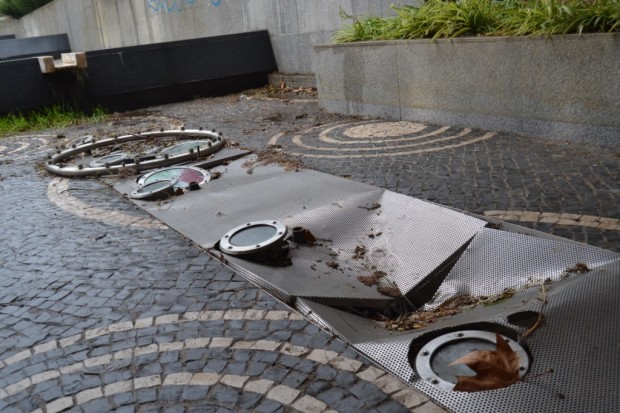 Os bicos em latão e cobre foram roubados e as placas de inox das armações forçadas. Desactivadas há vários anos, as fontes localizam-se no Jardim Professor Caldeira Cabral numa área cuja gestão nos últimos anos tem sido atribulada.
